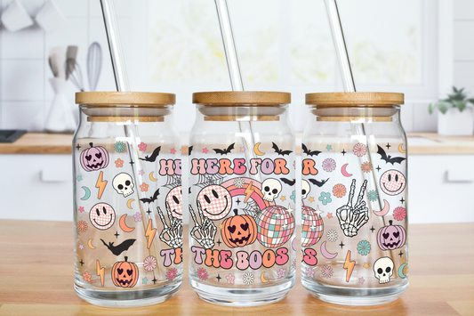 Here For The Boos - UV DTF 16 oz Libbey Cup Wrap (Ready to Ship)