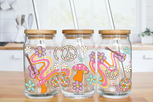 Hippie Theme - UV DTF 16 oz Libbey Cup Wrap (Ready to Ship)