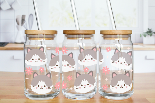 Kitty Faces - UV DTF 16 oz Libbey Cup Wrap (Ready to Ship)