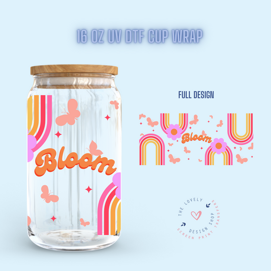 Bloom Rainbow and Butterflies - UV DTF 16 oz Libbey Cup Wrap (Ready to Ship) Feb 5