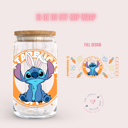 Blue Alien Easter Coffee Label - UV DTF 16 oz Libbey Cup Wrap (Ready to Ship) Jan 15