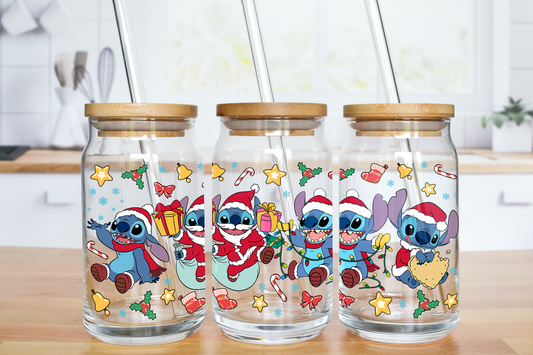Blue Alien Christmas Edition - UV DTF 16 oz Libbey Cup Wrap (Ready to Ship)