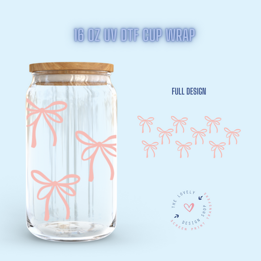 Blush Bows - UV DTF 16 oz Libbey Cup Wrap (Ready to Ship)