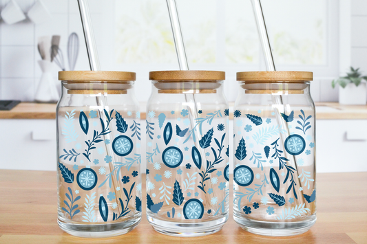 Blue Tones Snowflakes - UV DTF 16 oz Libbey Cup Wrap (Ready to Ship)