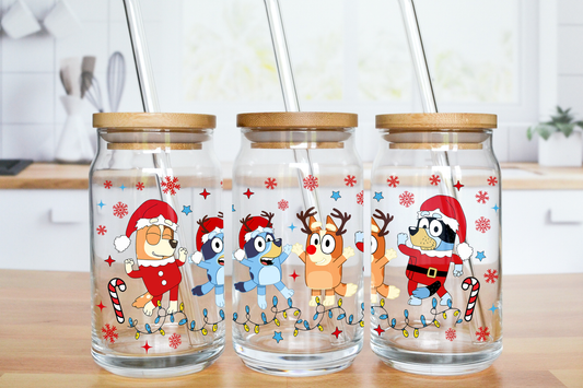Blue Dog Christmas - UV DTF 16 oz Libbey Cup Wrap (Ready to Ship)