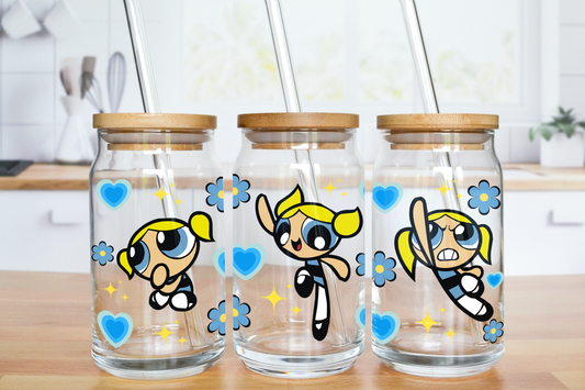 Blue Super Girl - UV DTF 16 oz Libbey Cup Wrap (Ready to Ship)