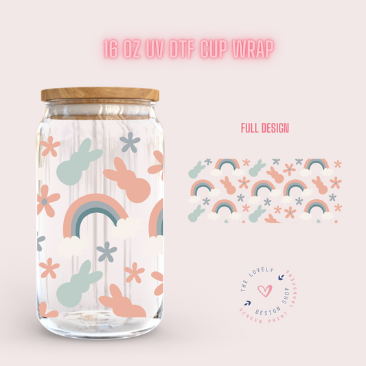 Peeps And Rainbows - UV DTF 16 oz Libbey Cup Wrap (Ready to Ship) Jan 23