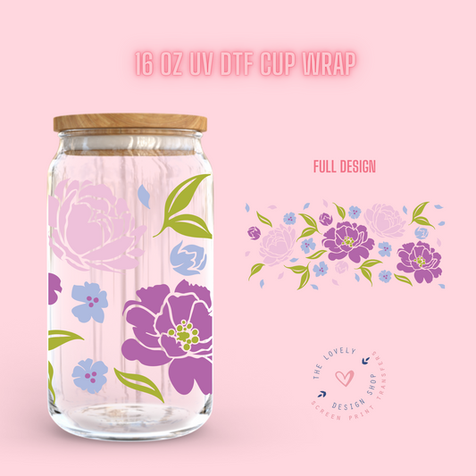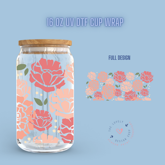 Peony Floral - UV DTF 16 oz Libbey Cup Wrap (Ready to Ship) Jan 15
