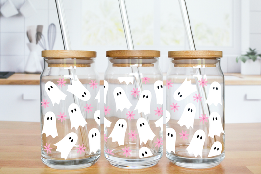 Pretty Ghosties with Daisies - UV DTF 16 oz Libbey Cup Wrap (Ready to Ship)