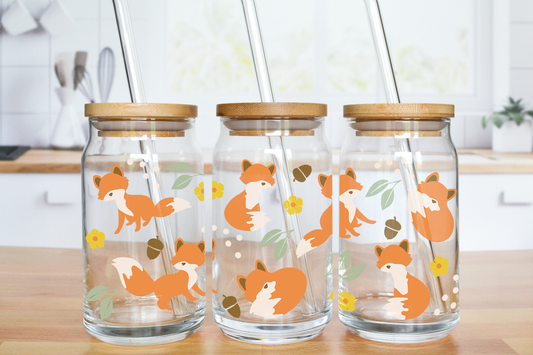Fall Fox - UV DTF 16 oz Libbey Cup Wrap (Ready to Ship)