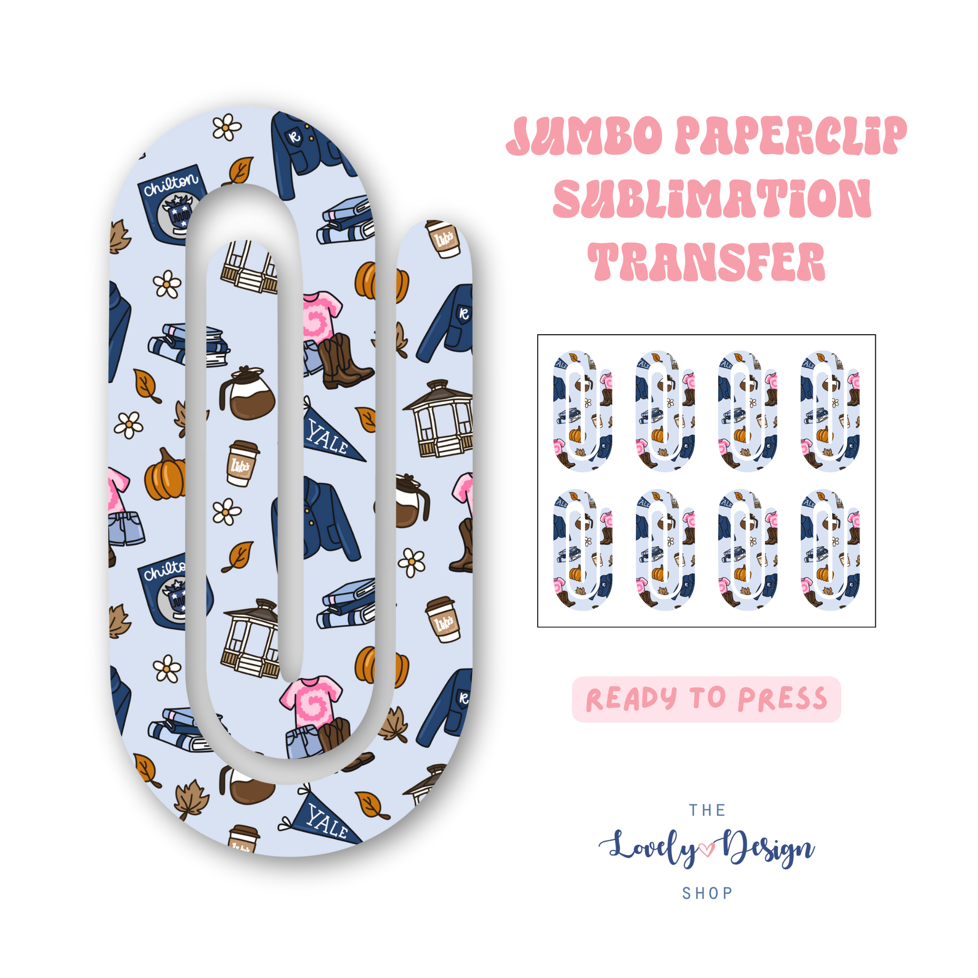 This listing is for a ready-to-press sublimation transfers designed to fit jumbo acrylic sublimation paperclips. Paperclip is NOT included.