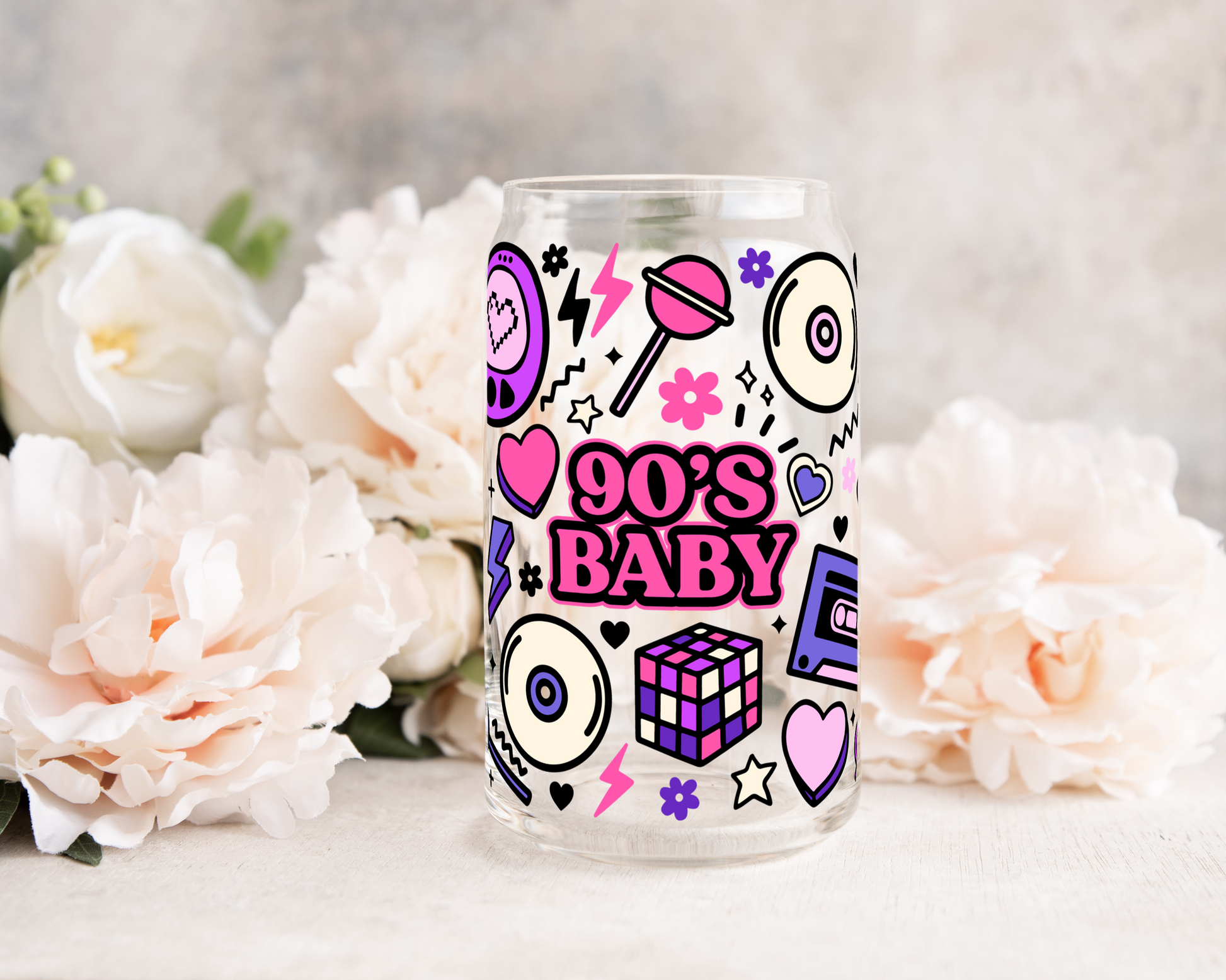90's Baby Doodles - UV DTF 16 oz Libbey Cup Wrap (Ready to Ship)