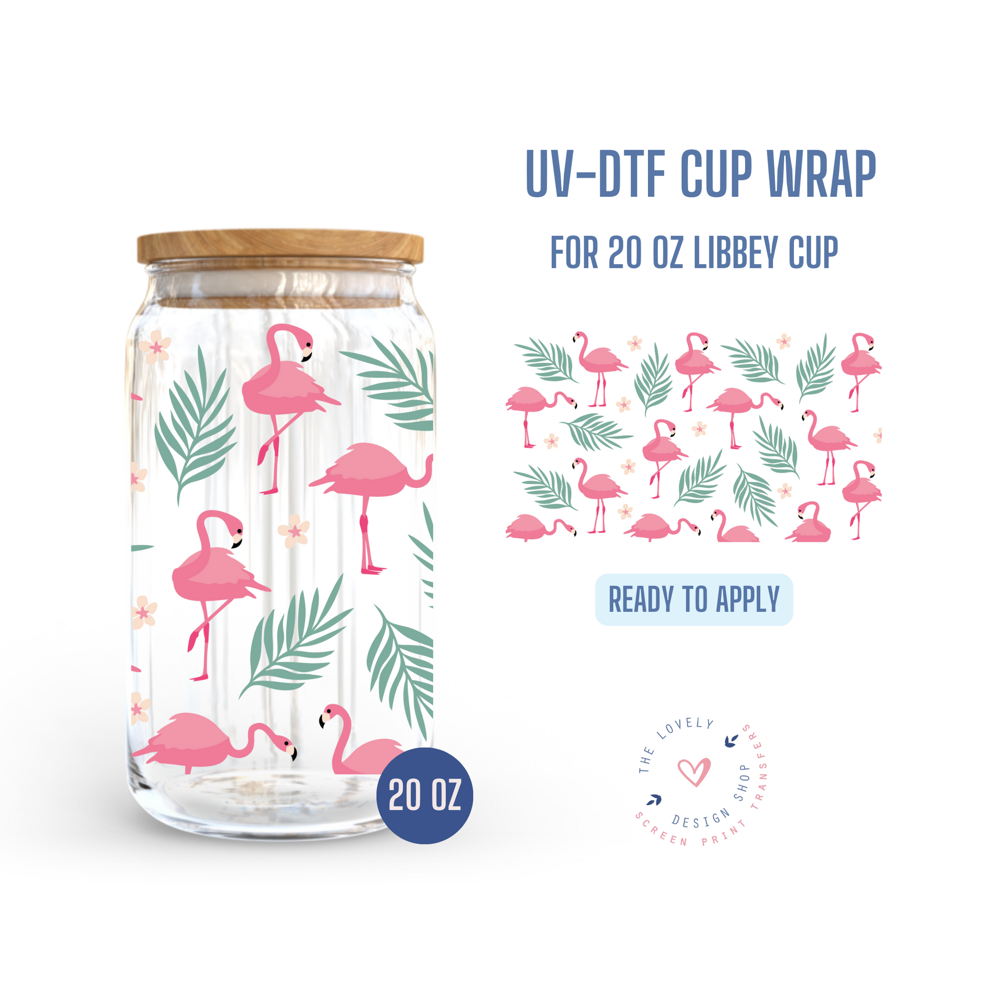 Fancy Flamingos - UV DTF 20 oz Libbey Cup Wrap (Ready to Ship) Apr 1